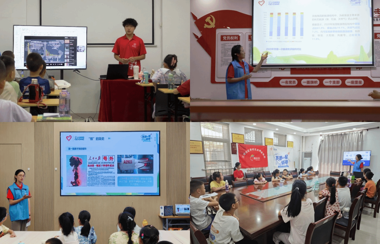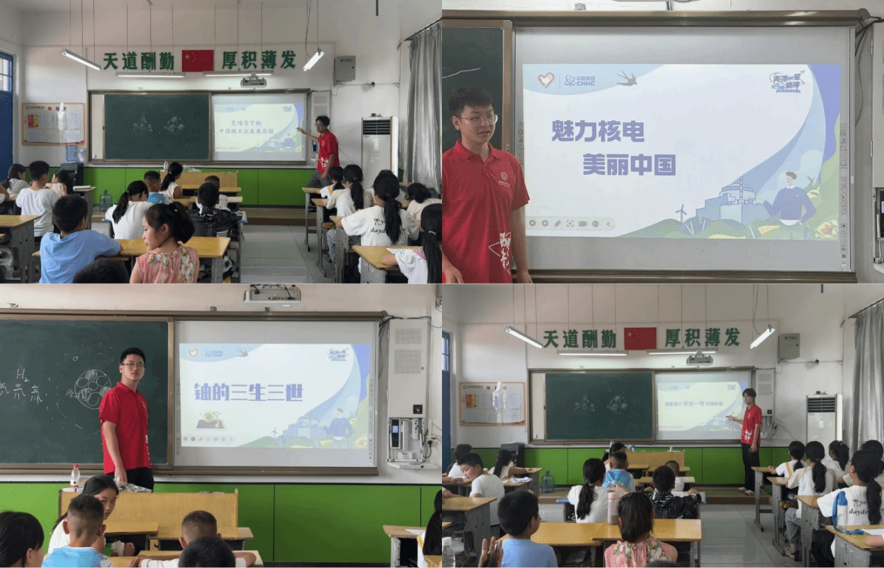 7月21日,“砥砺强国志,网安万里行”“两弹一星”精神志愿宣讲团成员走进陕西省蒲城县党睦镇孝通小学,深入开展“两弹一星”精神宣讲,并与在孝通小学开展暑期义务支教的“筑梦向未来,网安万里行”蒲城支教实践队实现交叉联动。活动以“红色铸魂、科技启智、生活育人”为主线,由三个维度展开生动宣讲:在“红色铸魂”环节,宣讲团以图文并茂的形式讲述我国核事业从无到有的艰辛历程,重点介绍王淦昌、郭永怀等科学家的感人事迹;在“科技启智”部分,通过趣味动画和模型演示,深入浅出地讲解核技术基本原理,激发孩子们的科学兴趣;“生活育人”环节则结合日常生活,科普核电站、医疗辐射等实用知识,消除对核辐射的误解。总体而言,此次实践活动走进乡村,将科技发展历程融入爱国主义教育,以科学知识普及增强青少年科学素质,在孩子们的心中播撒下科技强国的梦想。
