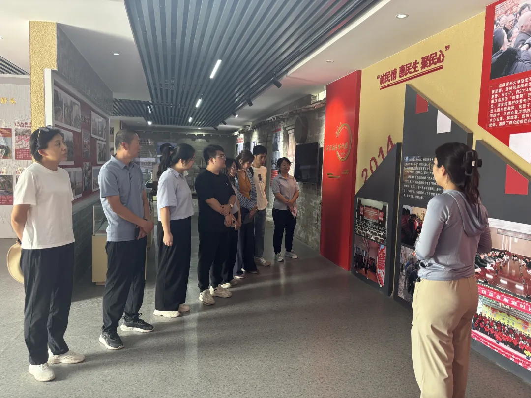 随后,调研队参观了新疆医科大学驻英吾斯塘村“访惠聚”工作队在该村新建的“新医红色印记”展览馆。馆内展示了乡村风土人情、新旧对比、村民奋斗历程、民族团结等内容。一张张图片、一件件实物诠释着“幸福生活,奋斗有我”的真谛。前来参观的村民表示:“大家真切地感受到新农村发展带来的变化,增强了我们的自信心和自豪感。现在大家幸福感倍增,干劲十足。”队员们纷纷感慨,“原来‘新医红’不仅是校徽的颜色,更是一代代医者扎根基层、服务群众的底色。”从医疗帮扶到民生实事,从健康科普到产业助力,驻村队员用脚步丈量责任,用专业守护健康,把红色基因融入“为人民服务”的实践中。