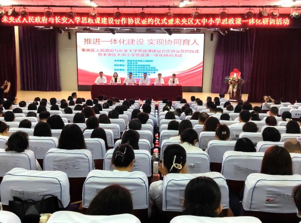 为深入贯彻落实习近平总书记关于学校思政课建设的重要指示精神,深化大中小学思政课一体化建设,5月27日,学校与西安市未央区人民政府在西安市第七十五中学举行思政课建设合作协议签约仪式暨大中小学思政课一体化研训活动。西安市未央区副区长王健,我校党委副书记徐引正出席签约仪式。签约仪式由西安市未央区教育局局长王细芳主持。