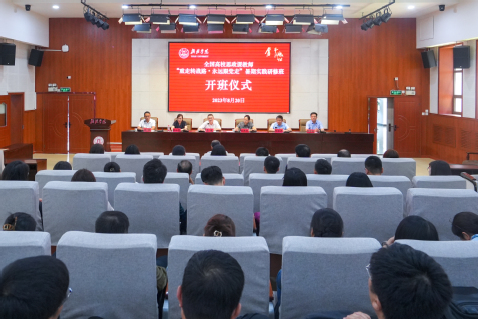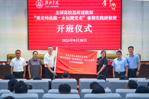康伟为研修班授班旗并在开班仪式上讲话,他介绍了榆林和榆林学院厚重的红色文化底蕴、光荣的革命历史以及学校的建设发展情况。他表示,今年是榆林学院建校一百周年,学院重点聚焦“西北革命策源地”,深化延安时期前“十三年”历史的研究和转战陕北的革命历史研究,为研究西北革命史提供了良好的发展契机,希望两校在红色历史资源挖掘等方面共同合作、共同挖掘、共同发展。