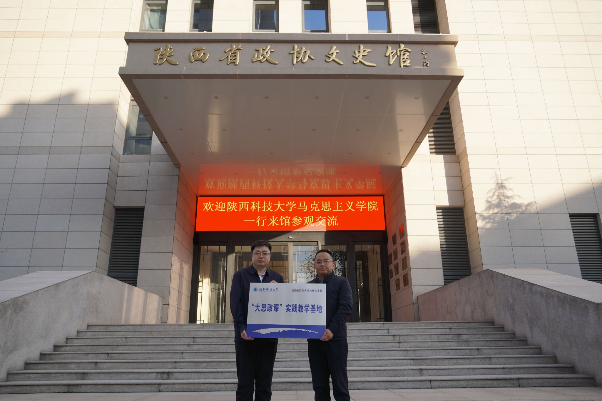 为进一步加强和拓宽校馆合作,2026年1月9日,马克思主义学院、中共党史党建学院赴陕西省政协文史馆开展调研交流,并签署共建“大思政课”实践教学基地协议。学院领导班子及师生代表参加了本次活动。