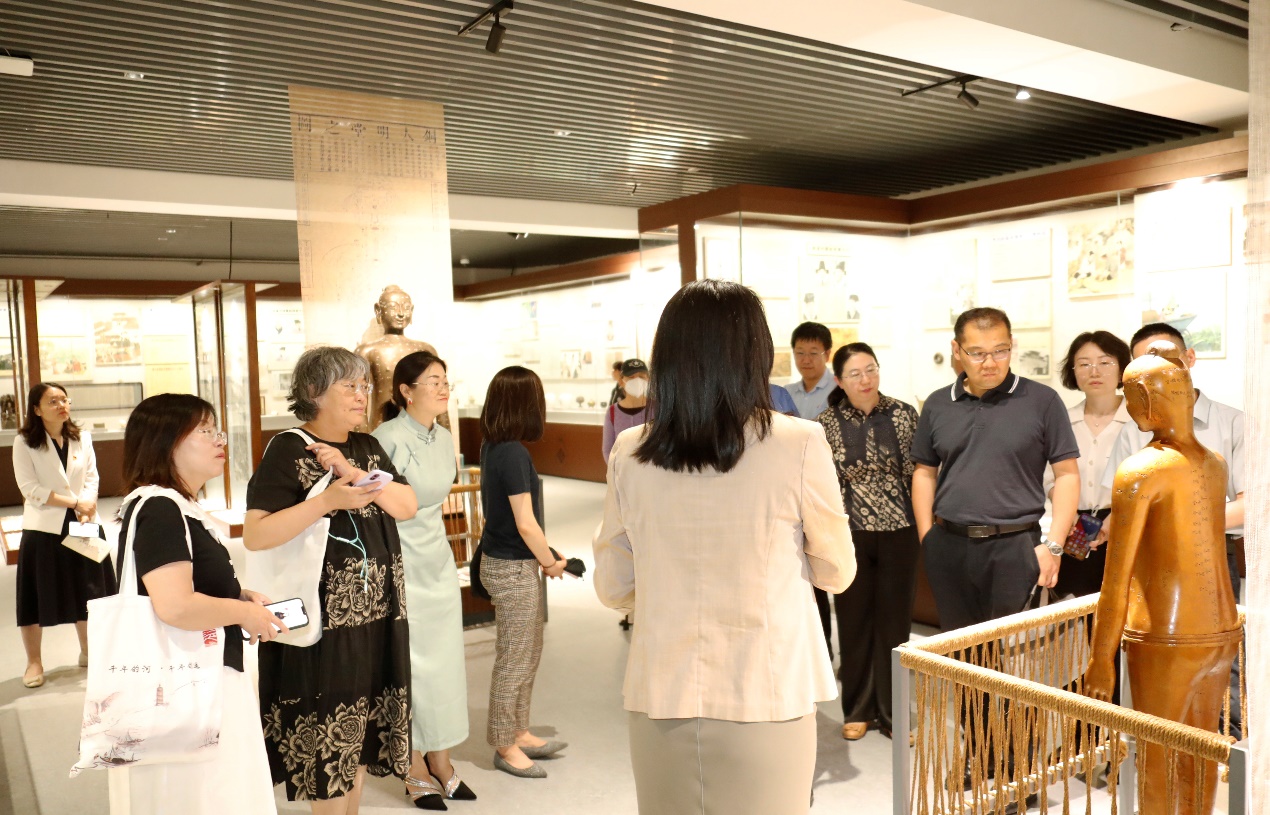 主题交流活动前,与会嘉宾观看主题展板、成果视频、一体化建设历程专题短片等,观摩北京中医药大学在推进大中小学思政教育一体化建设方面取得的丰硕成果。实地走访考察科学家精神教育基地——王琦书院以及中医药博物馆。活动立体化、全方位地呈现了北京中医药大学打造高质量一体化育人品牌的有效探索与独特优势。