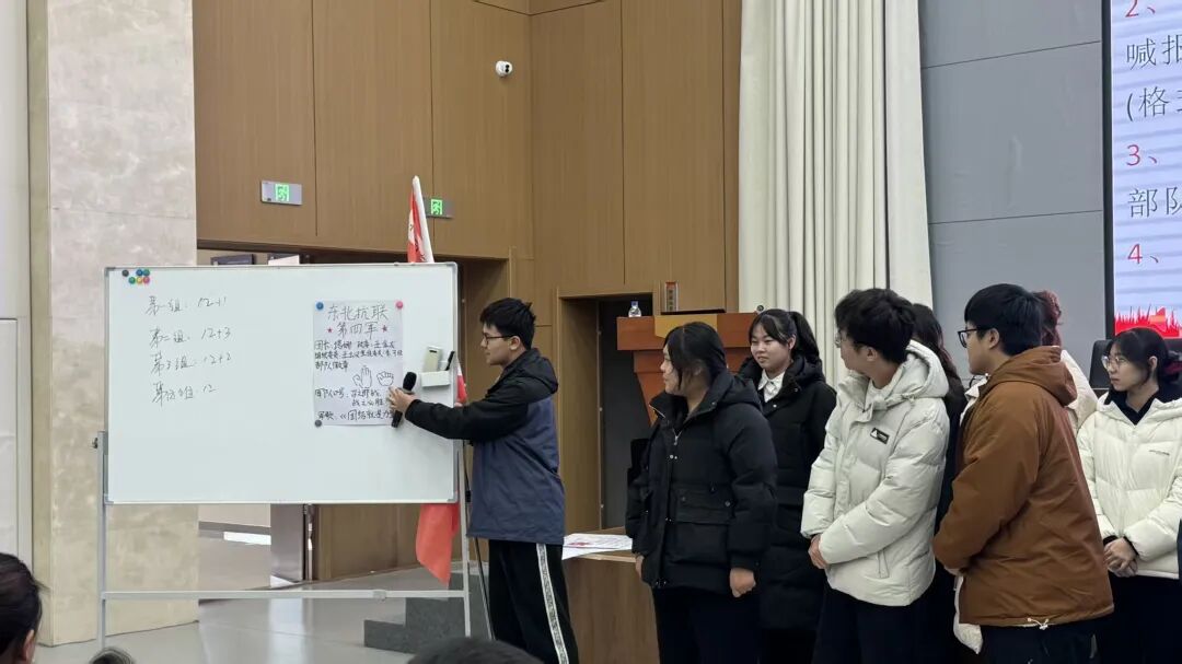 仪式结束后,中共磐石市委党校教师宋天威组织开展《红色破冰,抗联整编》主题活动。他从“集结队伍看团结”“抗联整编展士气”“歌声嘹亮唱给党”三个部分详细论述东北抗联精神相关内容。在讲解过程中,师生们通过“手指游戏”“抗联部队风采展示”等趣味活动迅速拉近距离,学员们积极参与、认真对待、听从指挥,会场氛围持续升温,进一步点燃了大家学习东北抗联精神的昂扬热情。活动最后,全体师生高唱《保卫黄河》《歌唱祖国》《没有共产党就没有新中国》,嘹亮的歌声响彻会场,激昂的旋律将赤诚的爱国心与对抗联先烈的深切崇敬融为一体,让红色精神在歌声中传递,在心灵深处扎根。