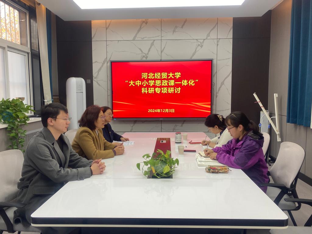 12月3日下午,学院与河北经贸大学大中小学思政课一体化集体备课中心、河北经贸大学附属中学共同举办“大中小学思政课一体化”构建启动活动,院长李英、一体化集体备课中心联络员梁若愚博士和附中校长冯丽、思政课教师宋红莎、孙小静出席活动。本次活动在河北经贸大学附属中学会议室举行。