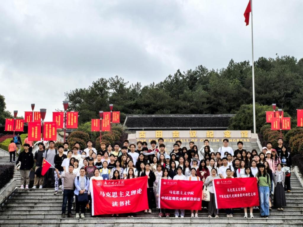在古田会议召开95 周年、古田全军政治工作会议召开10 周年之际,11月10日,我校马克思主义学院组织马克思主义理论读书社部分学生和来自多个学院的160多名本科生,走进古田会议旧址、毛主席纪念园、古田会议纪念馆及协成店,深入探寻红色记忆,感悟革命精神。