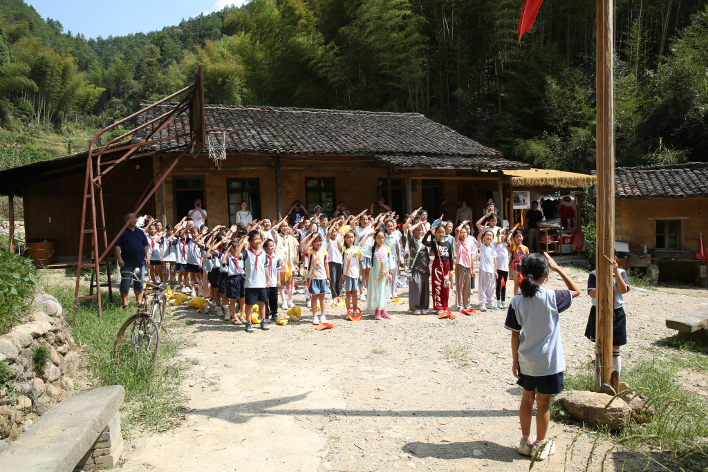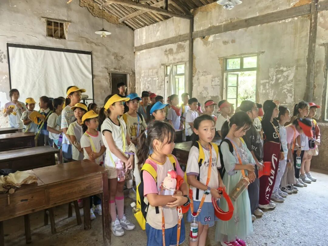 斑驳的土墙房、陈旧的课桌椅、泥地小操场与木质旗杆,不仅还原了昔日偏远农村的办学场景,更让少年们深刻体会“绿水青山就是金山银山”的实践成果。