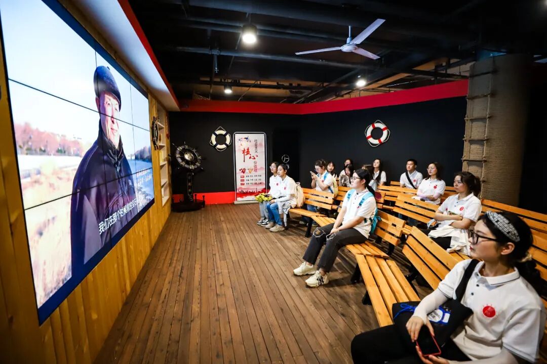 下一站,研学团成员来到中苏航运历史展览馆。中苏航运纪念馆展览以"中苏百年航运"为主线,通过航运历程、航运精神和航运印记三个板块,展示了中苏航运在早期中苏贸易往来、民事交往以及新中国成立初期为国还债中创造的航运价值的重要意义。