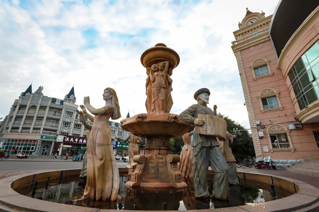 研学团成员率先来到俄罗斯风情步行街,独具俄罗斯风情的建筑、铜像、手绘套娃雕塑、进口俄制品等吸引了研学团成员们的注意。