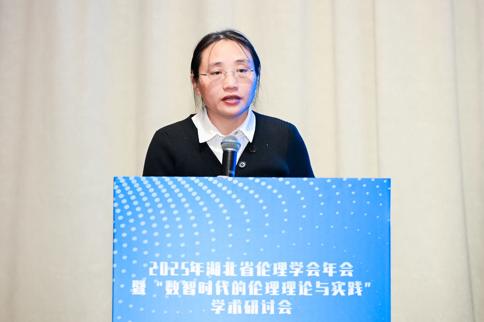 李家莲在致辞中认为此次会议聚焦数智时代的伦理理论与实践的是湖北省伦理学人回应时代热点问题和前沿问题的体现。她提出了数智时代面临的新的伦理挑战,期待本次会议都能为这些问题的解决提供智力贡献。