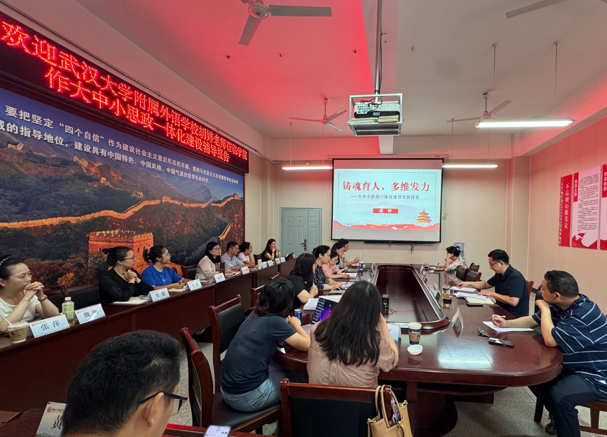 胡婷老师以“铸魂育人,多维发力”为题,系统介绍了武汉大学附属外语学校在推动思政课程与课程思政同向同行等方面的探索,重点阐述了武汉大学推动大中小学思政课一体化专题教学活动方案,具体分析了其在小学、初中、高中、大学、研究生阶段的融入情况以及教学设计要求。胡婷表示,大中小学思政一体化建设任重道远,唯有以协同创新为笔、以学段衔接为墨,方能绘就立德树人的壮美画卷,培育堪当民族复兴重任的时代新人。