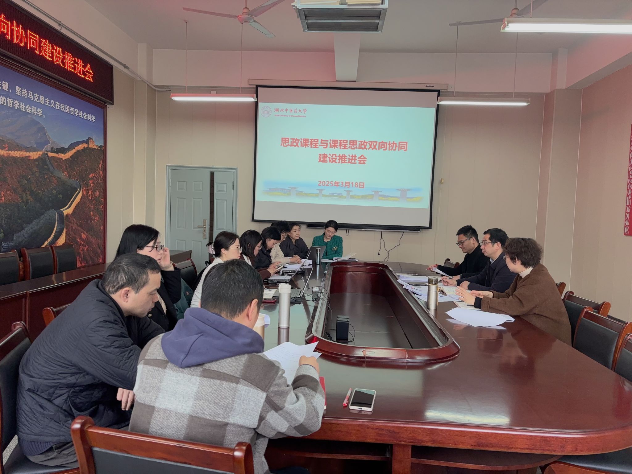 会议指出,要紧紧抓住教师队伍这个“主力军”,牢牢把握课程建设这个“主战场”,始终抓好课程教学这个“主渠道”,通过持续融入荆楚文化理念,打造具有“时珍”元素,具有“中医味,荆楚香”的沉浸式思政课堂,以高水平教育持续推动各类课程与课程思政同向同行,将显性教育与隐性教育有机统一起来,形成协同效应,构建全员全程全方位的育人大格局。