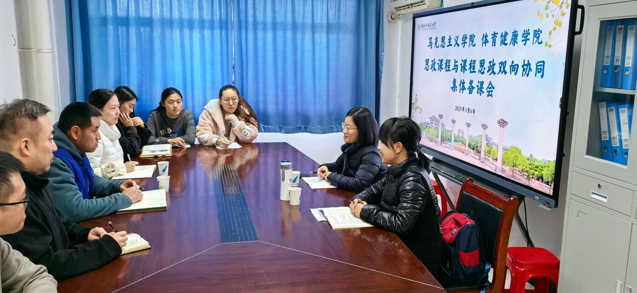 3月6日,魏丽芬、陈琛等老师赴体育健康学院开展双向协同集体备课会