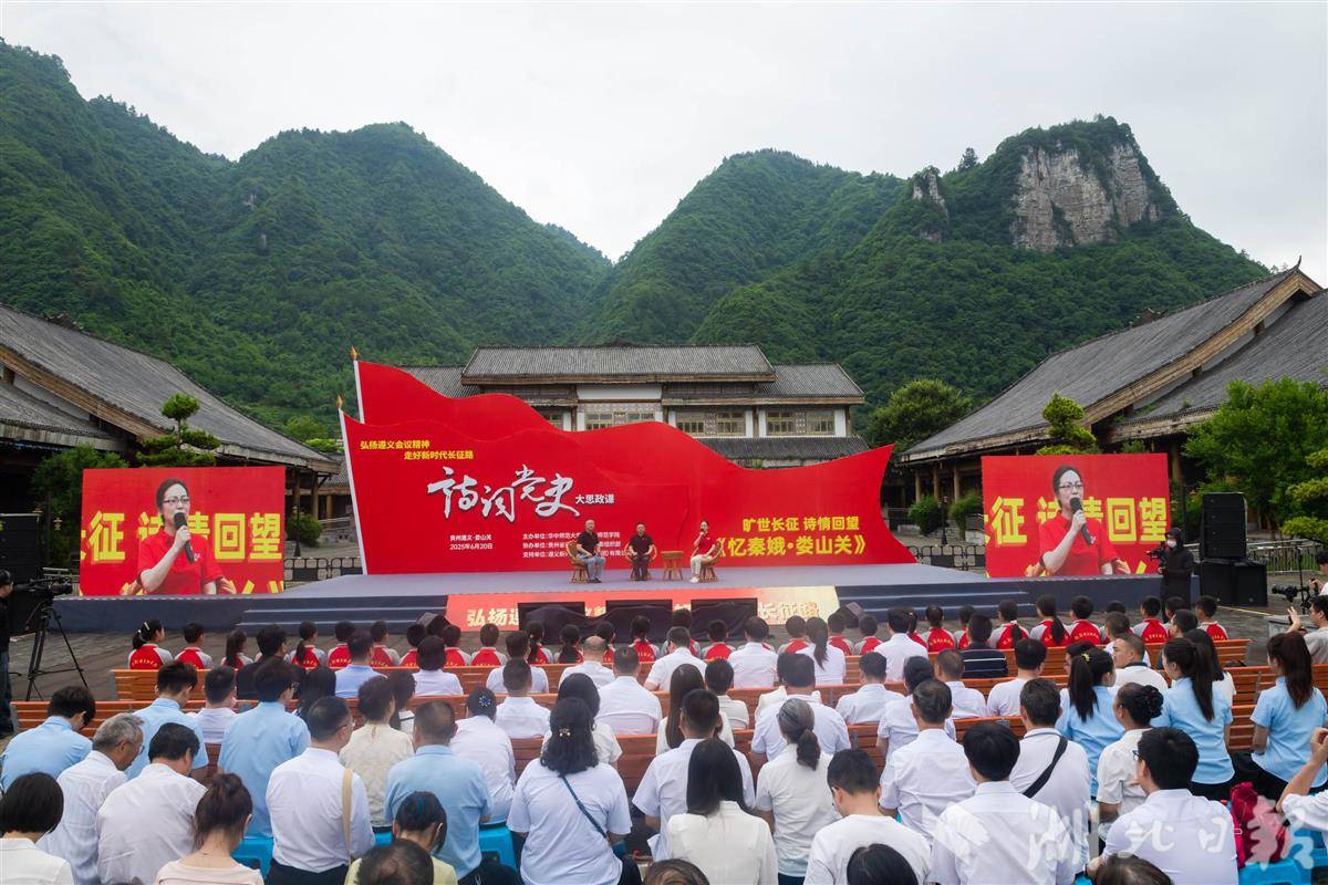 6月20日,弘扬遵义会议精神、走好新时代长征路“诗词党史”大思政课——旷世长征 诗情回望《忆秦娥·娄山关》在贵州遵义娄山关毛泽东诗词馆前举行。来自师范教育协同提质计划华中师范大学组团的师生,以线上线下相结合的方式共上一堂实景大思政课,共同纪念遵义会议召开90周年。