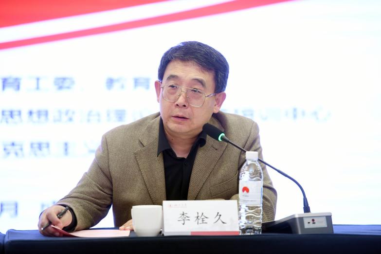 四川大学马克思主义学院党委书记李栓久对在座的思政课教师提出三点建议:一是提高站位,牢牢把握思政课的政治属性,坚持社会主义办学方向,落实立德树人根本任务;二是扎实学懂弄通做实习近平新时代中国特色社会主义思想,在世情、国情、党情、民情中把理论讲深、讲透、讲活,让学生在深入理解理论的科学性中认同理论、信仰理论;三是处理好教学与科研的关系,没有研究的教学是无源之水无本之木,研究不单纯是发论文,而是对党的创新理论融入课程内容的学与悟、教与思。