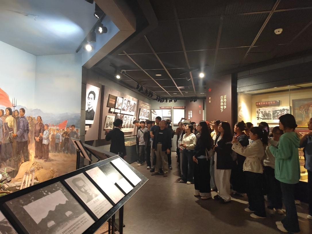 实习队首先来到湘南年关暴动纪念馆,这里有关于打响湘南起义第一枪的宜章年关暴动史实陈列。在讲解员引导下,队员们依次参观了“高山寒流急”“霹雳震乾坤”“烽火连三月”“走向井冈山”“铁血铸英魂”五个主题展区。展区通过图片、文字、实物等形式,系统展现了湘南起义从酝酿、爆发到发展的全过程。详实的史料与珍贵文物生动再现了革命先辈艰苦卓绝的斗争历程。队员们或驻足凝视,或认真记录,通过这些历史见证,对湘南革命历史有了更直观、更深刻的认识。