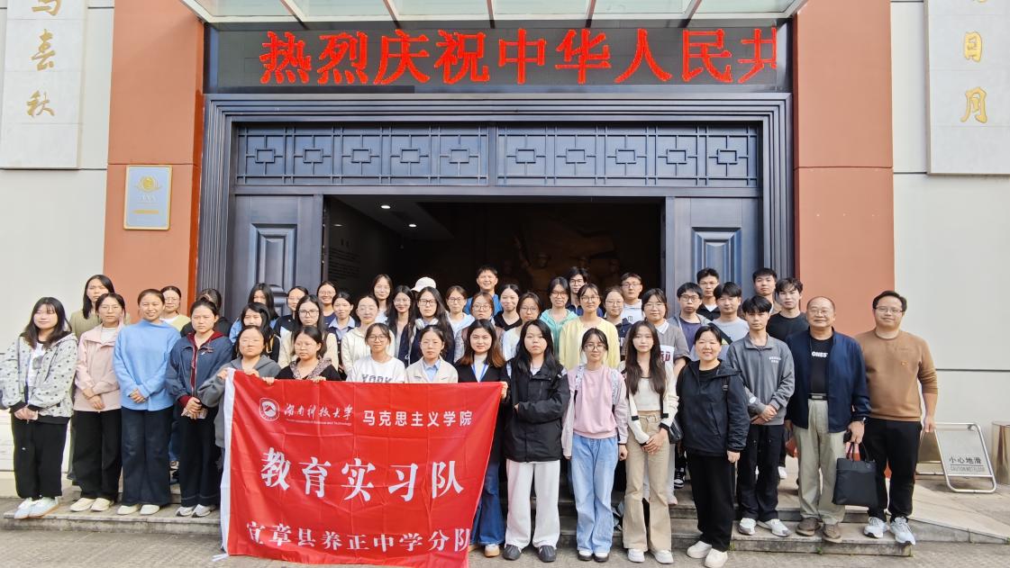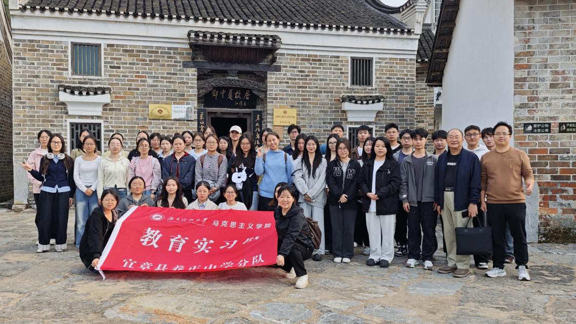 宜章县红色文化资源非常丰富,是革命传统教育和思政课教学不可多得的大课堂。二十届四中全会召开公报指出,新时期要“发展具有强大思想引领力、精神凝聚力、价值感召力、国际影响力的新时代中国特色社会主义文化,”红色文化资源进教材、进课堂、进头脑是增强思政课引领力的必要举措。此次红色之旅,通过在湘南年关暴动纪念馆和指挥部旧址、邓中夏故居的沉浸式学习,实习队师生深刻感悟革命先辈坚定执着追理想、实事求是闯新路的崇高精神,增强了传承红色基因、担当育人使命的历史自觉。同时,本次活动采取实地探访、现场教学与互动研讨等教学形式,在将“思政小课堂”与“社会大课堂”有机结合,将地方红色文化资源有效转化为鲜活教学素材、深入挖掘湘南红色文化资源育人价值等方面做出了有益尝试。实习队师生一致认为,本次活动提高了自身作为思政课教师的政治素养与教学实践能力,决心将实践学习的收获融入今后的教学生涯,让红色精神在新时代的思政课堂上绽放光芒,不断提升思政课实效性。