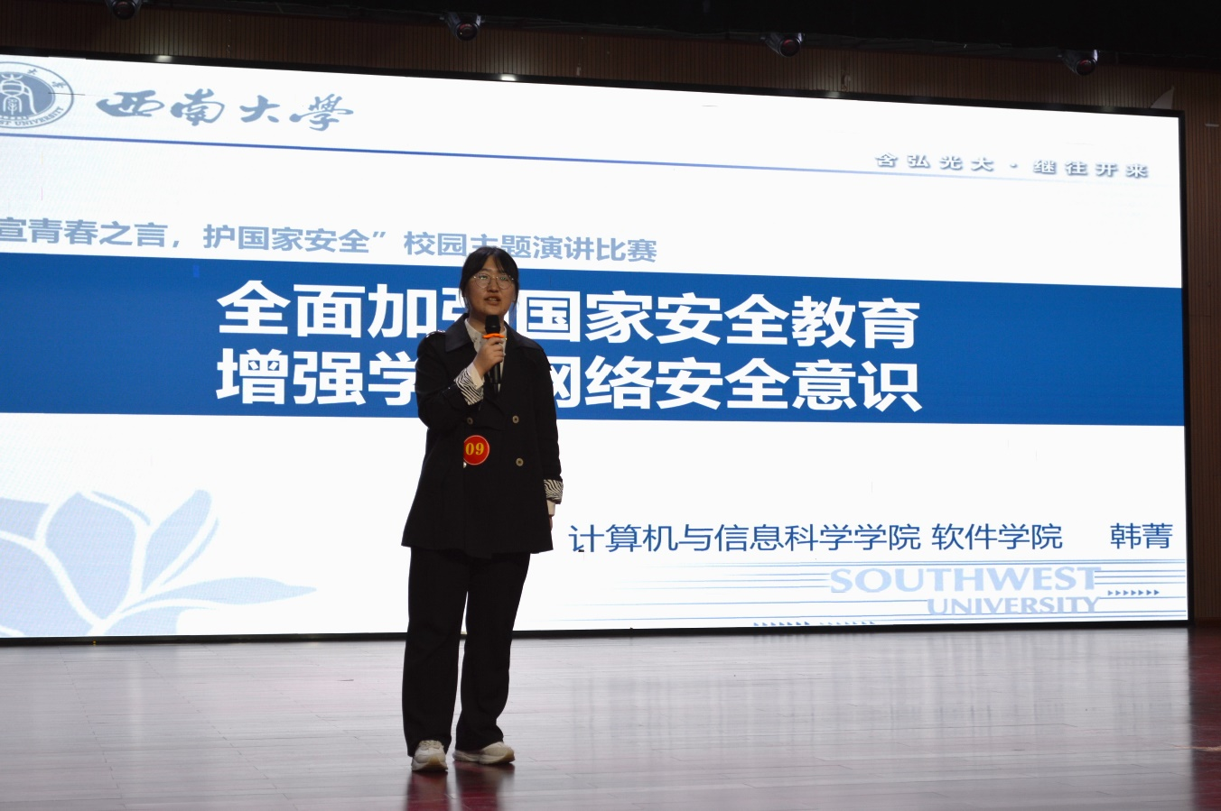 为更好地迎接第八个全民国家安全教育日,贯彻落实习近平总书记关于全面加强国家安全教育的重要指示精神,增强师生国家安全意识,4月14日晚,学校“宣青春之言,护国家安全”校园主题演讲比赛于圆顶报告厅顺利举行。