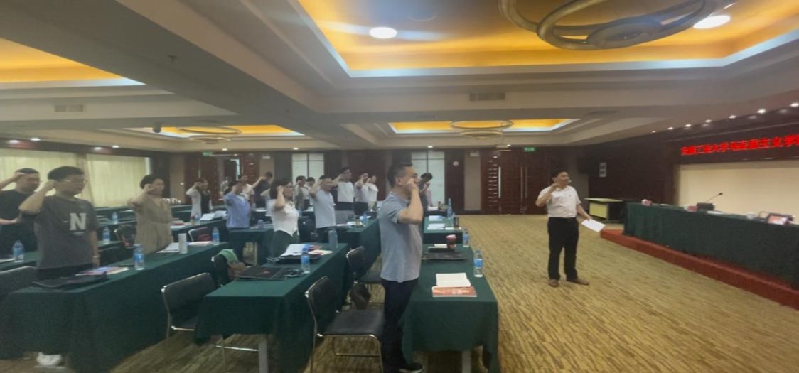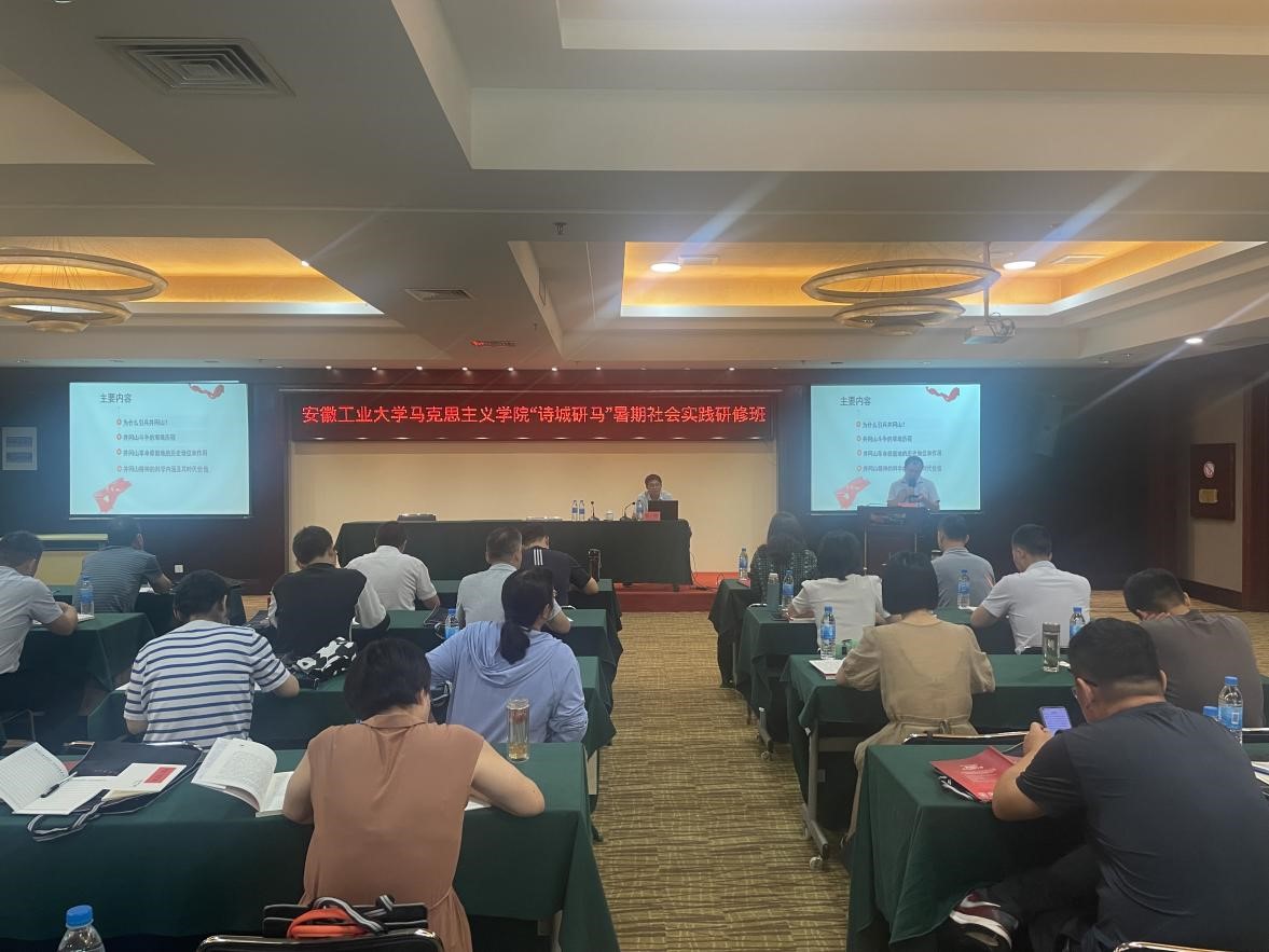 7月26日上午,安徽工业大学马克思主义学院“诗城研马”暑期社会实践研修班在中共井冈山市委红色教育基地正式开班。基地张贵民副主任致欢迎词并授班旗。徐惠作开班仪式动员讲话。全体学员面对班旗庄严宣誓。