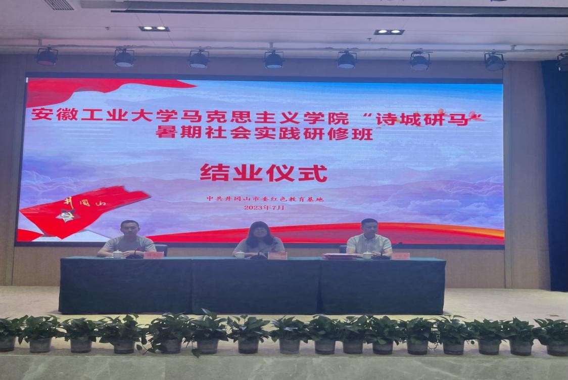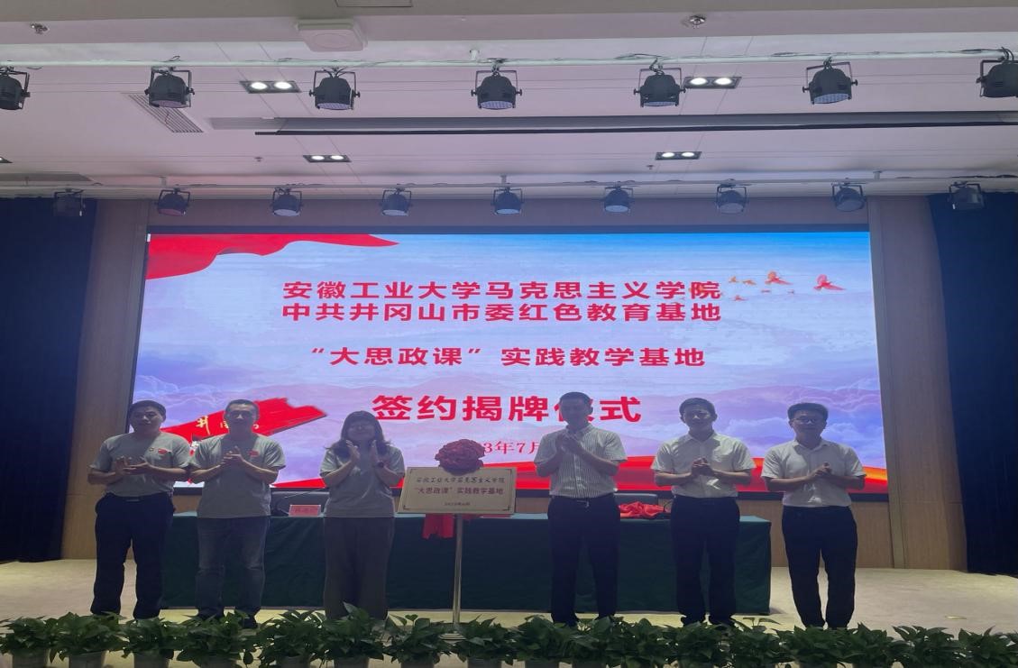 习近平总书记指出,“大思政课”我们要善用之,一定要跟现实结合起来。7月30日,在圆满完成此次实践研修各项任务之后,作为本次主题实践研修的重要内容之一,安徽工业大学马克思主义学院与中共井冈山市委红色教育基地在基地多功能报告厅举行了合作共建“大思政课”实践教学基地签约揭牌仪式。双方领导现场签订共建协议,并举行了揭牌仪式。基地主任谢星驰,徐惠、林忠心出席,基地外联二处钟华主任、带队汤老师等和全体研修班学员参加。校地双方表示,希望能够依托红色资源,创新形式,拉近红色文化与青年学子的距离,加深青年学子对革命精神的认同和理解,用好弘扬革命传统和革命文化、加强社会主义精神文明建设、激发爱国热情、振奋民族精神的生动教材,发挥好“大思政课”实践教学基地传承红色精神、赓续红色血脉、传播红色文化的育人功能。