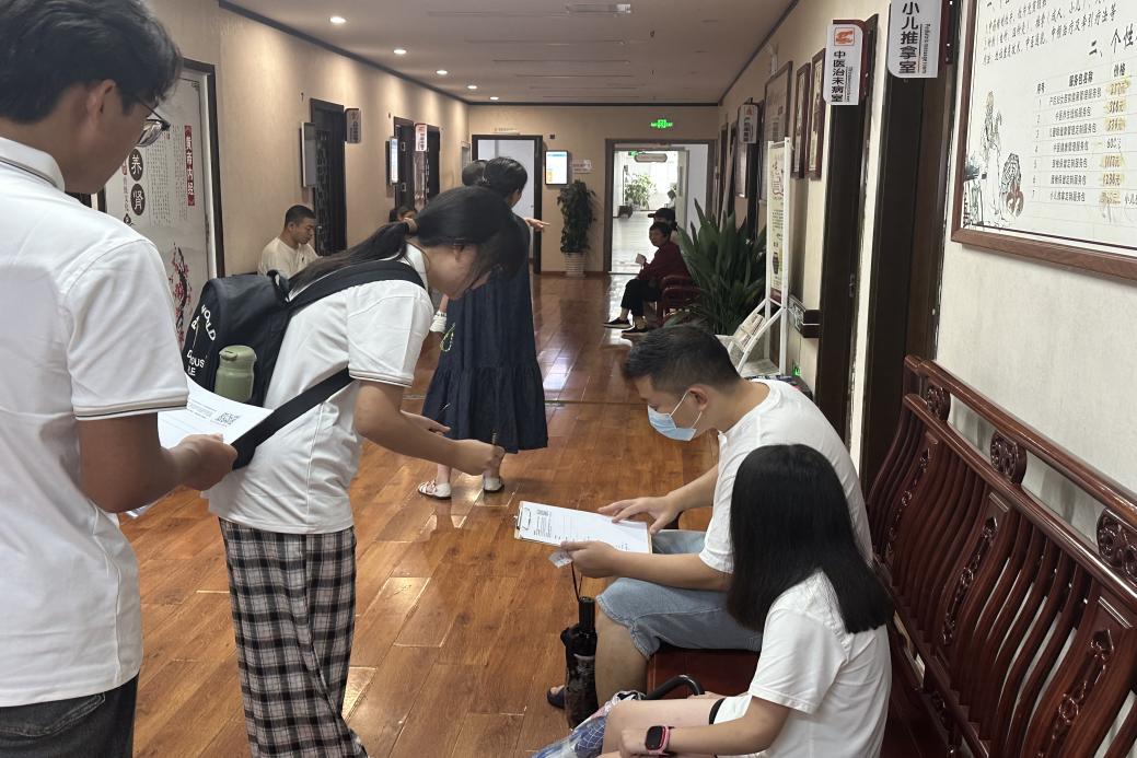 图为实践团成员在晋阳社区卫生服务中心发放问卷