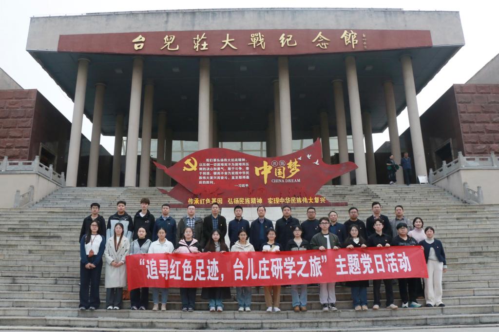 为深入贯彻落实党的二十届三中全会精神,进一步加强学院党员革命传统教育,增强党员干部的使命感和责任感,11月16日至17日,马克思主义学院党委组织教工党支部、本科生党支部、研究生党支部赴台儿庄开展“追寻红色足迹,台儿庄研学之旅”主题党日活动。学院党政领导班子,党支部书记、委员,学生党员干部参加活动。