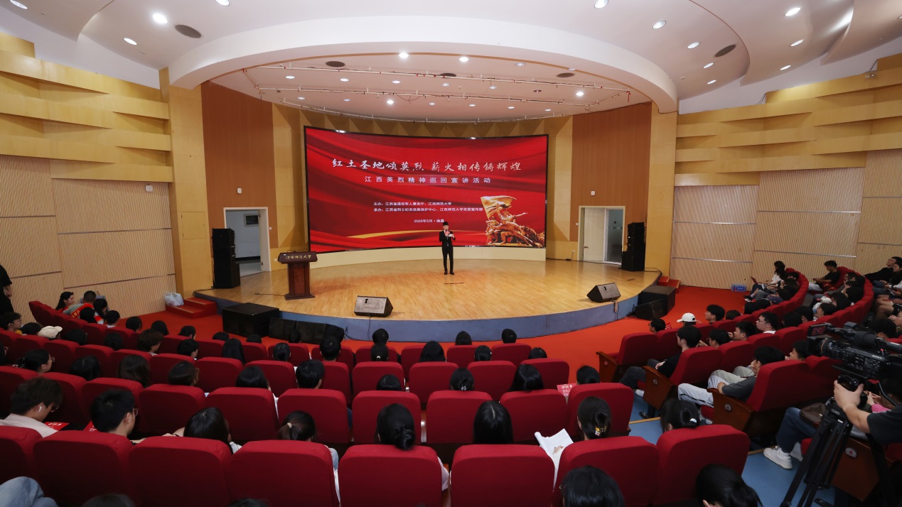5月28日下午,由江西省退役军人事务厅和我校联合主办的“红土圣地颂英烈 薪火相传铸辉煌”江西英烈精神宣讲活动在音乐艺术广场报告厅举行,江西省退役军人事务厅党组成员、副厅长涂汉兵,校党委常委、副校长姚弋霞出席,学校相关部门负责人及300余名师生代表参加,共同感悟英烈精神的深刻内涵与时代价值。