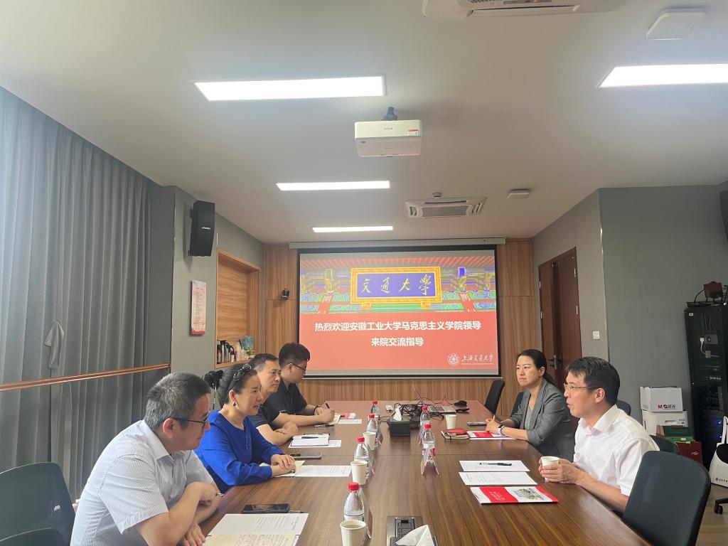 在上海交通大学马克思主义学院,邢云文院长、张巍副书记等热情接待了走访一行人员。邢云文院长通过交大马院宣传片的方式介绍了交大马院的历史沿革、基本情况,并着重分享了学院在推进以“国产商飞”为平台的“大思政课”建设以及学科团队建设、大中小学思政课一体化等方面的具体举措与经验。张巍副书记介绍了交大马院思政课社会实践、《形势与政策》等课程的建设情况及其特色做法、经验等。