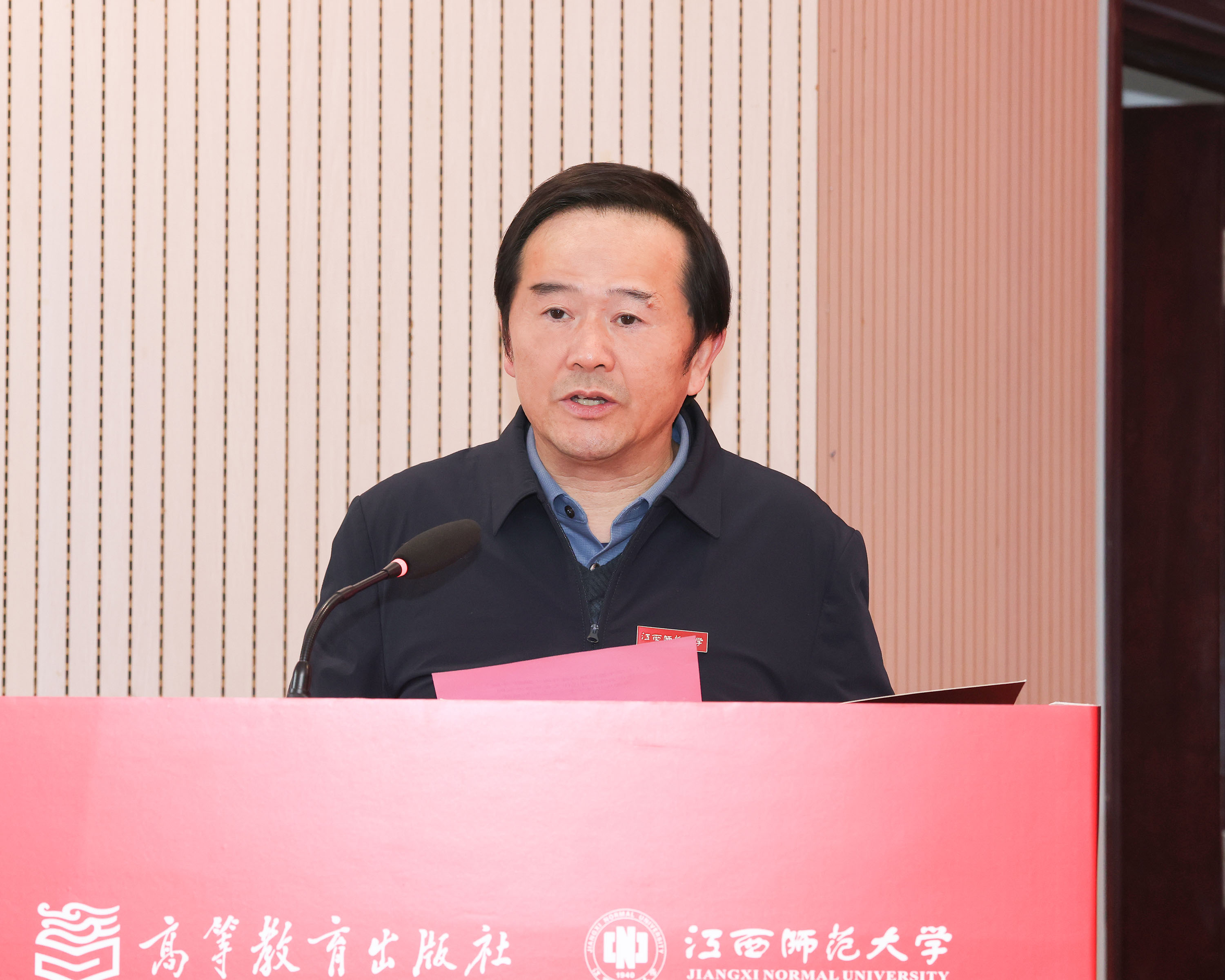 为深入学习贯彻党的二十届四中全会精神,推动思政课改革创新与内涵式发展,11月24日,由高等教育出版社思政事业部、我校马克思主义学院主办,《思想理论教育导刊》编辑部、《马克思主义理论学科研究》编辑部承办的《大学生思想热点面对面(2025 年版)》座谈会暨新时代伟大变革成功案例资源库建设学术交流会在我校举行。高等教育出版社党委副书记、总编辑谭方正,江西省教育厅二级巡视员杨联愚,校党委书记朱小理出席开幕式并致辞。开幕式由我校党委常委、副校长周利生主持。清华大学、复旦大学、北京师范大学、兰州大学等高校的100余专家学者,以及我校师生代表参加。