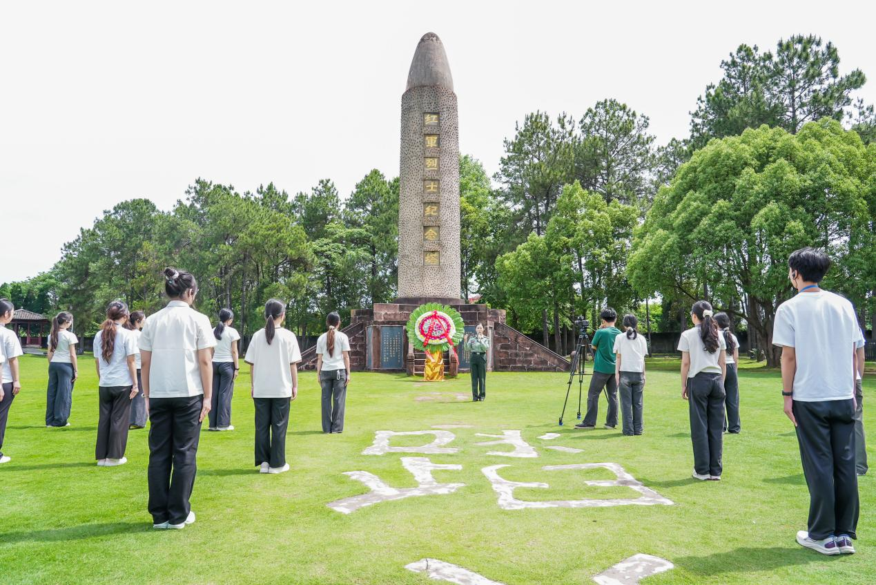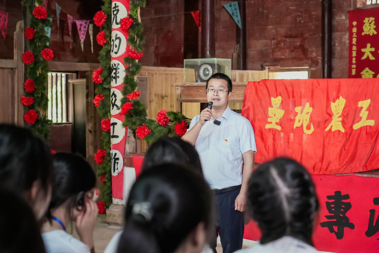 学院兼职思政课教师、叶坪革命旧址群讲解员邓张珊结合红军烈士纪念塔等红色地标,讲述“八子参军”等苏区群众踊跃支援革命的感人故事,阐释“最后一碗米做军粮,最后一个骨肉上战场”的精神内核,解码群众路线在苏区时期的实践成果,展现党与人民血肉联系的蓬勃伟力。