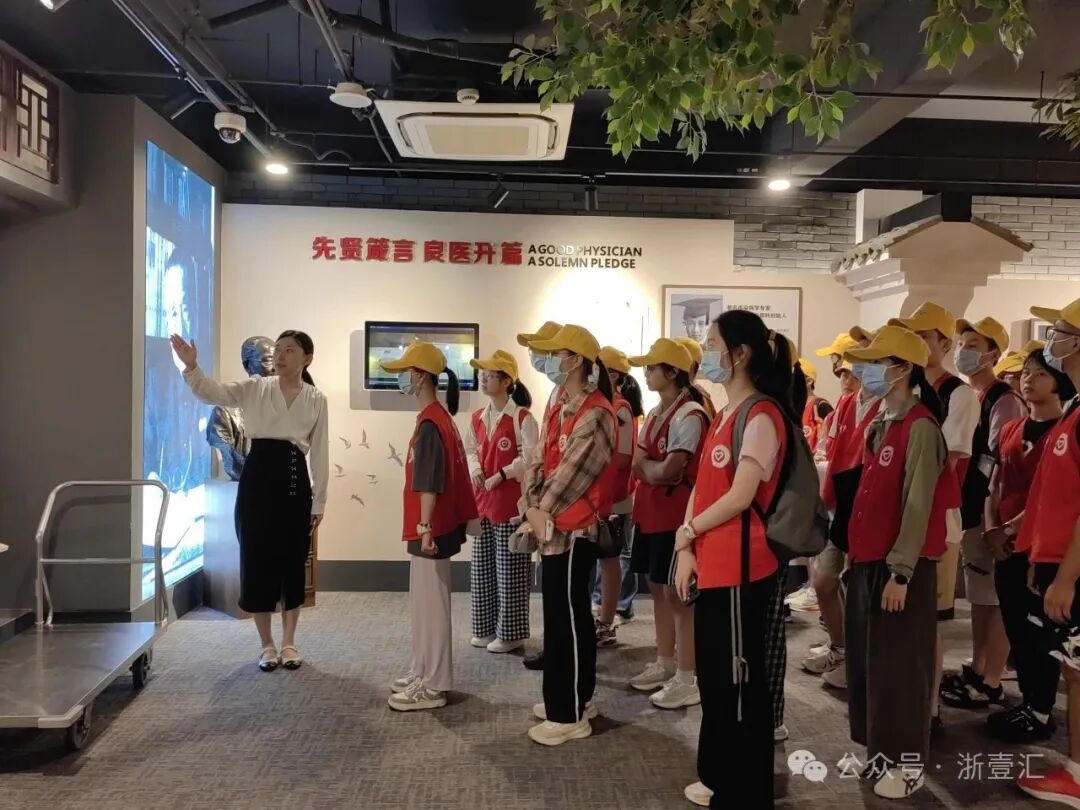 最让人激动的是 “探秘之旅”:院史馆内,党政办苏梅晨老师将浙大一院医者们的初心故事娓娓道来,每一段岁月都在光影里闪着温暖的光,听得孩子们眼睛亮晶晶的,好像顺着时光隧道,触到了那些穿越风雨的医者温度;