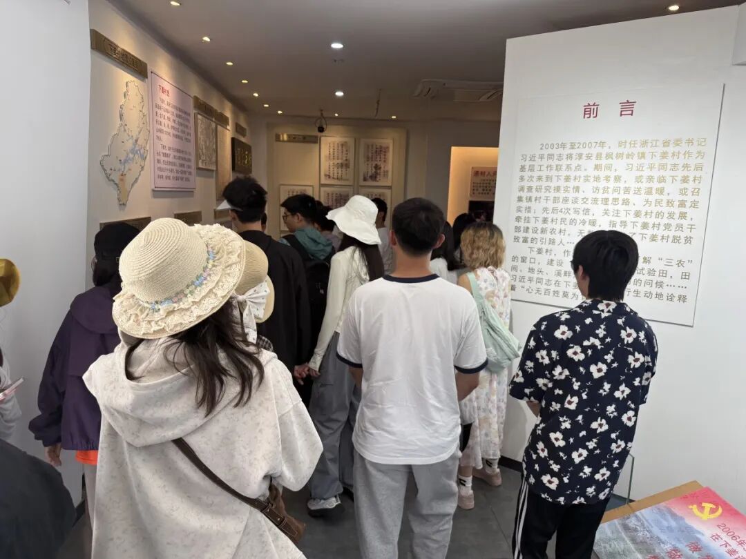本次研学活动结合了两大内容,精心设计了参访路线。首先,毕业生们一行走进了习近平总书记在浙工作期间的基层联系点——下姜村。下姜村依山傍水、风光旖旎,是新时代美丽乡村建设的典范。同学们通过实地参观,听取现场讲解,深刻体会“绿水青山就是金山银山”理念的生动实践,进一步增强了对生态文明建设的认同和思考。