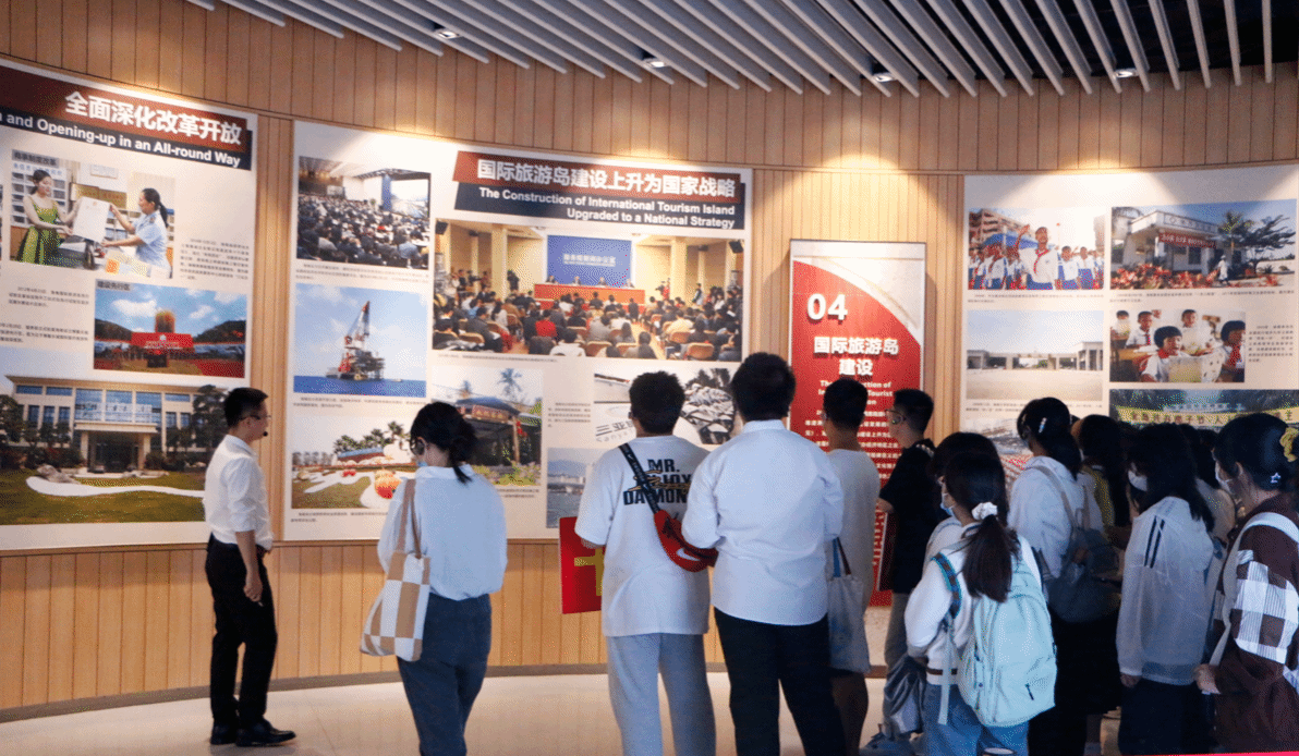 接着队伍来到了海南省史志馆。在工作人员带领下,分两批先后参观了“红旗不倒”、“扬帆奋进”两大展览,亲身感受中国共产党人在海南进行艰苦卓绝的革命斗争中所培育出来的“二十三年红旗不倒精神”,以及进一步加深对海南自贸港建设成果的认识与了解。
