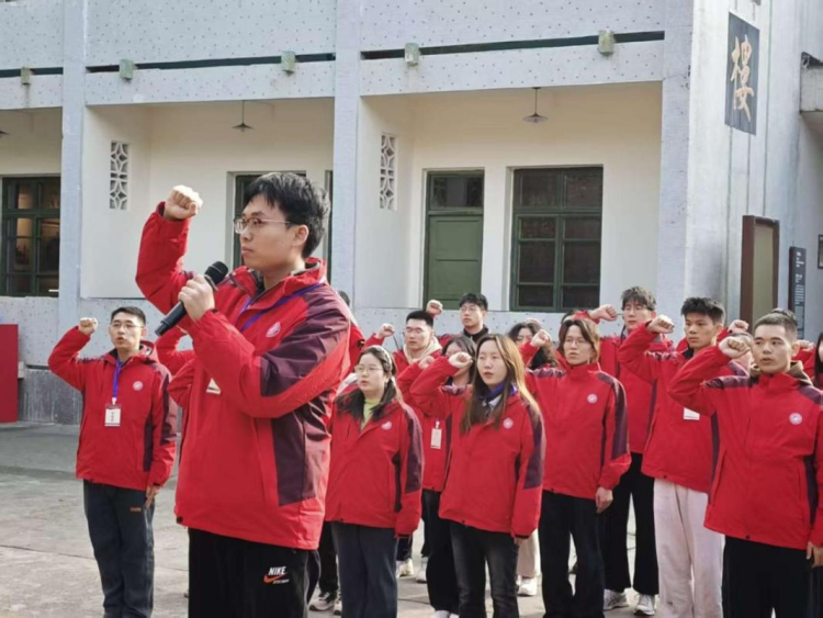 在邓稼先旧居简朴的院落前,全体学员庄重肃立,面向党旗重温入党誓词。我志愿加入中国共产党……”铿锵誓言在庭院中久久回荡,既饱含着对革命先辈的崇敬之情,更彰显了新时代青年传承红色基因、接续奋斗初心、勇担时代使命的坚定信念。