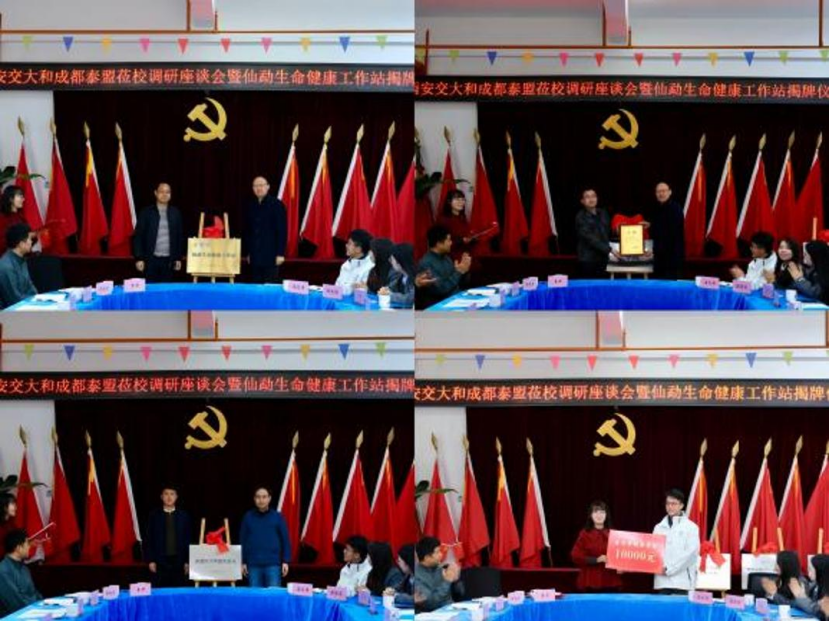 现场依次为“仙勐生命健康工作站”“泰盟医学梦想实验室”“西安交通大学宗濂厚德书院实践基地”“医学文化社团”四个项目揭牌,并向相关支持单位颁发证书。西安交通大学第26届研究生支教团施甸分队成员高文涛向工作站捐赠“医学梦想奖学金”,并汇报工作站前期筹备情况。随后,胡浩教授以“医学生的实验课”为主题向同学们生动讲授“工作站第一课”。