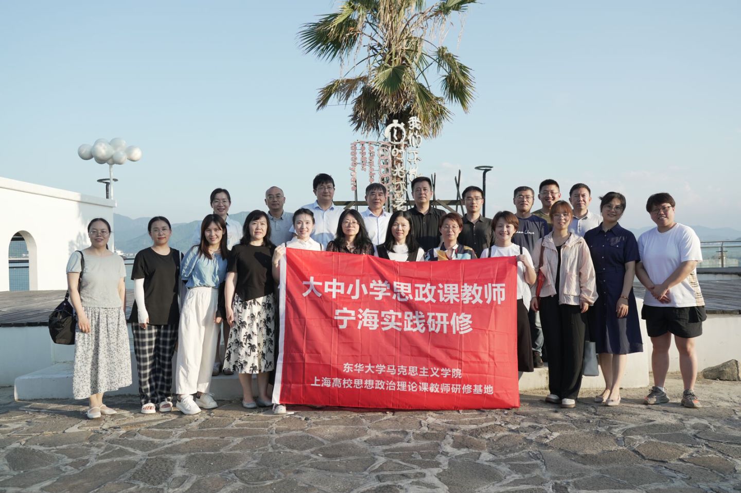 为深入贯彻落实党的二十届三中全会关于“推进大中小学思政课一体化改革创新”的重要精神,8月1日至2日,东华大学马克思主义学院联合上海高校思想政治理论课教师研修基地组织开展了“大中小学思政课教师宁海实践研修”。华东师范大学第一附属中学副校长、全国模范教师、特级教师陈明青,上海市松江二中党委书记、校长俞金飞,东华大学附属实验学校副校长蔡凤婷、东华大学马克思主义学院副院长陈向义、王不凡等大中小学思政课教师团队23人参加了本次活动。本次研修以中国式现代化的县域实践为主题,得到了宁海县委宣传部门的大力支持。老师们先后考察了宁海县多个基层社区与村镇,覆盖社区党建、基层治理、生态文明、共同富裕、非遗保护、文化产业等多个模块的内容。
