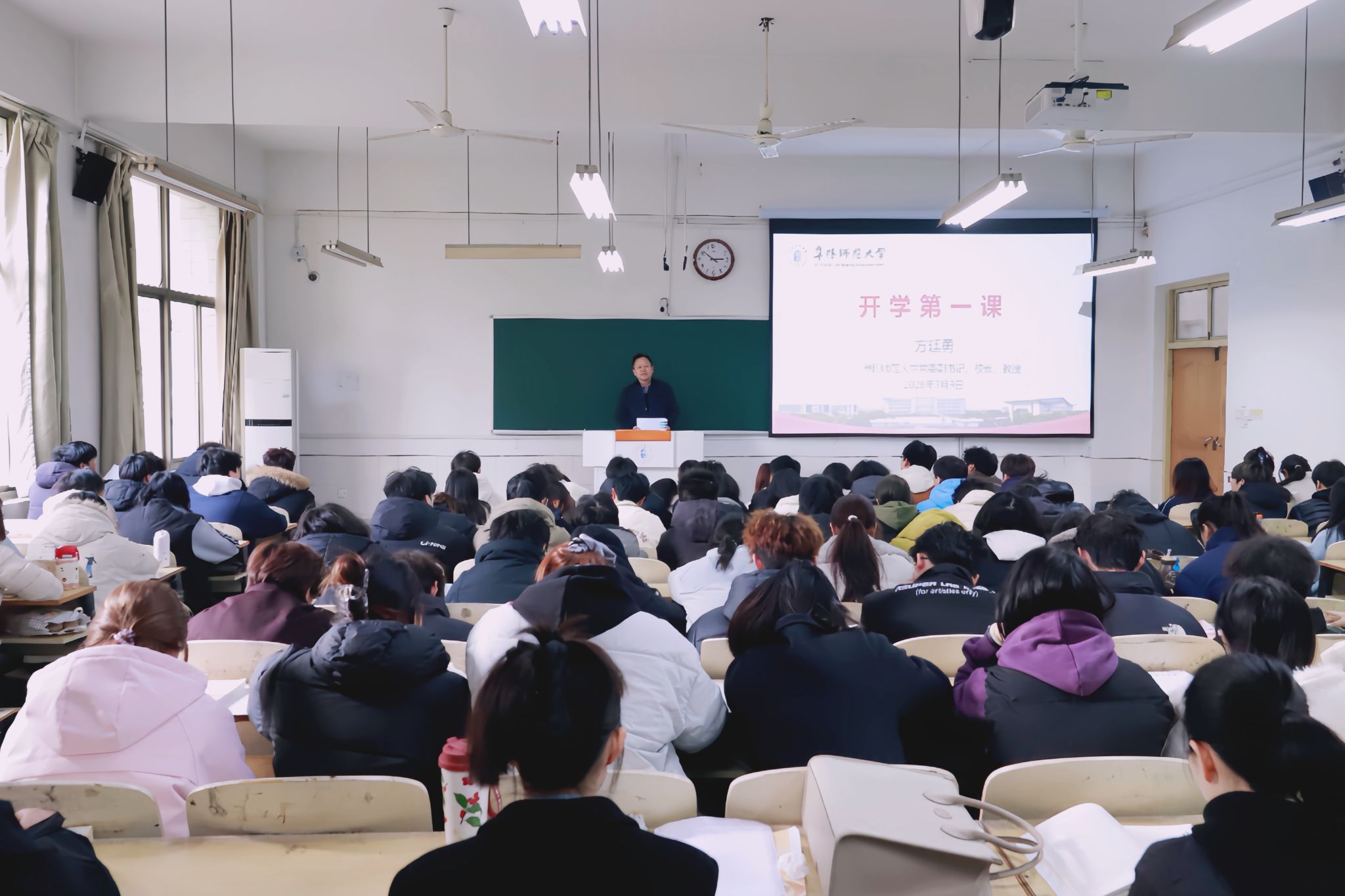 3月9日下午,方廷勇走进西湖校区景行楼113教室,结合学校悠久的办学历史、深厚的文化底蕴、丰硕的人才培养成果,以及大批优秀校友的奋斗故事,为青年学子讲授了一堂生动深刻、催人奋进的“开学第一课”,并围绕“信心、勇气、格局、应变”等关键词,向同学们送上殷切期望与谆谆嘱托。