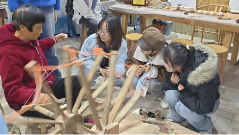 研学最后一站,师生们走进新庄村乡村振兴示范点,开展专题调研实践。在街道干部的详细介绍与实地走访中,同学们深入了解新庄村以羊乳、柿子两大特色产业为核心,推动农业转型升级、延伸产业链条的发展实践。大家重点考察村内文创产品开发、村容村貌整治成果,以及“农业+文化+旅游”三产融合的发展模式,并围绕乡村旅游规划优化、特色品牌打造等关键问题,与当地负责人展开深入交流,在理论与实践的碰撞中探寻乡村振兴的有效路径。