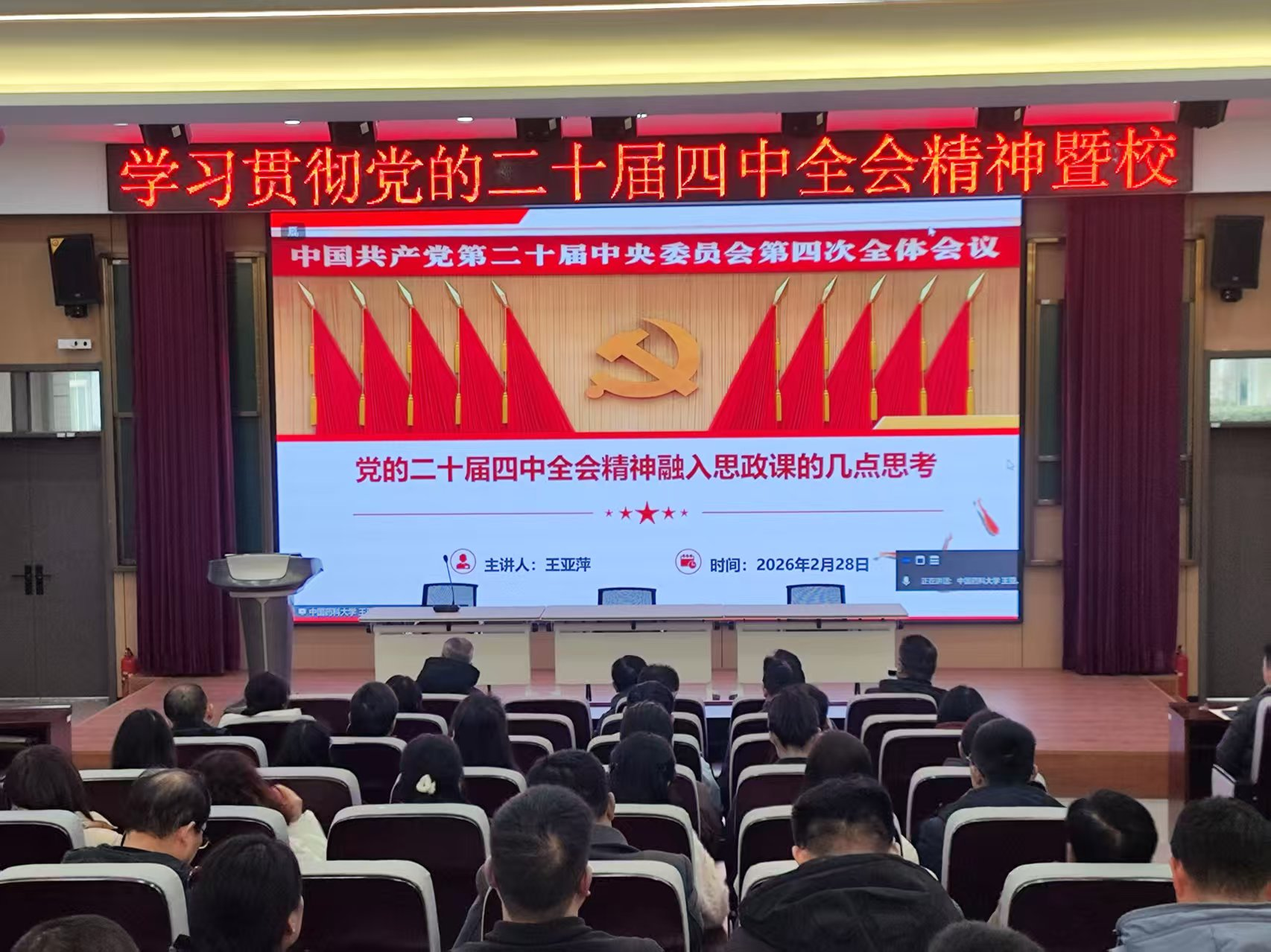王亚萍以《党的二十届四中全会精神融入思政课的几点思考》为题,从为何融、融什么、怎么融三个方面,结合以学生为中心、高阶性、创新性、挑战度的金课标准,开展了深入浅出的针对性辅导。