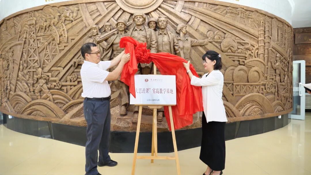 参观结束后,在克拉玛依博物馆举行了“大思政课”实践教学基地揭牌仪式。马克思主义学院党委副书记、纪委书记吴常柏,克拉玛依市文化体育广播电视和旅游局党组成员、市文博院院长潘多淼共同为基地揭牌。