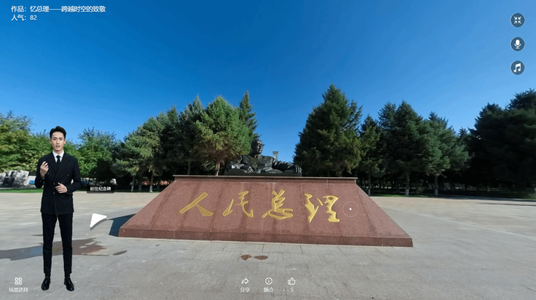 作品简介:周恩来总理纪念碑、纪念馆位于石河子市北郊,迎面是庄严肃穆的周恩来总理纪念碑,北侧是周恩来总理纪念馆。周恩来总理纪念碑是军垦新城的骄傲,是全国爱国主义教育基地,它浓缩了丰富的军垦文化。VR展厅应运而生,依托先进的数字化技术,致力于深度传承与弘扬周恩来总理的崇高精神。