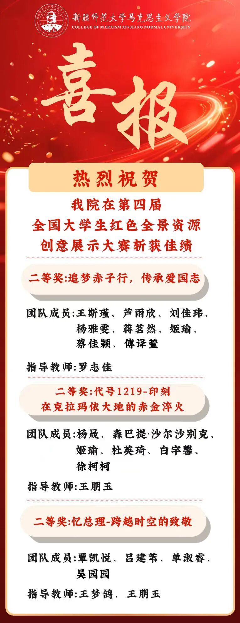 此次获奖是我校深化思政课改革创新的生动实践。学校将以此次赛事为契机,持续深耕新疆本土红色资源,推动红色文化与实践教学、技术创新深度融合,鼓励师生以赛促学、以创促研,让红色基因在数字化时代代代相传,为培养担当民族复兴大任的时代新人注入不竭动力。