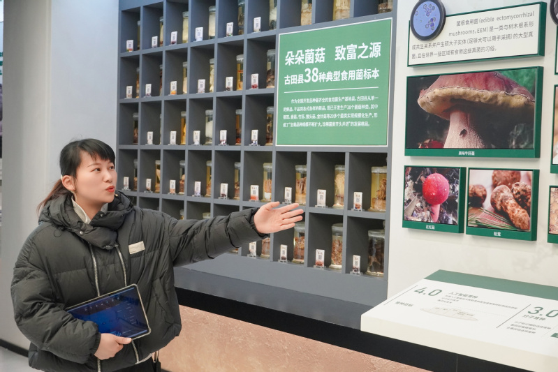 走进中国古田食用菌文化博览中心的中国食用菌展示馆,实践队沉浸式了解食用菌产业发展历程。展馆以38种典型标本、历史工具实物、互动投影等多元载体,系统呈现中国食用菌产业从探索培育到现代化发展的全脉络,重点展示了古田首创的食用菌袋栽技术。队员们获悉,古田食用菌育种技术历经经验育种、常规育种、分子育种三次迭代,正朝着人工智能育种的第四次迭代迈进,AI技术的应用有望大幅加速育种材料筛选进程,为产业发展注入科创活力。