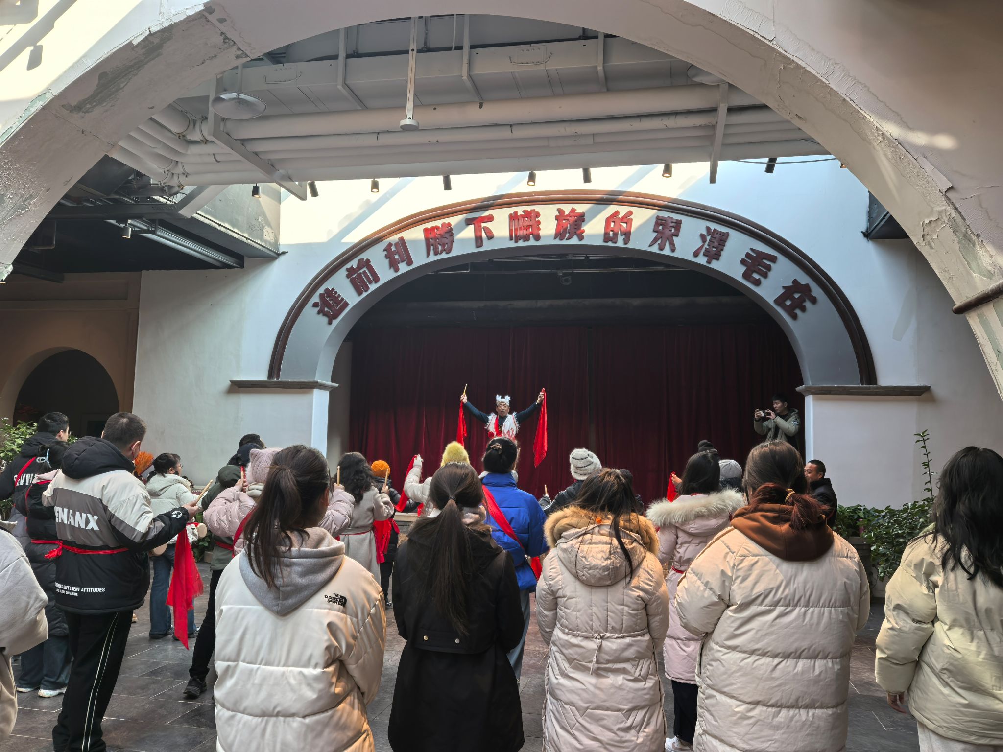 学子们走进1938街区,在这里感受到了革命文化的鲜活传承。近距离观看了安塞腰鼓的表演,鼓手们震天的鼓声中饱含着陕北人民的豪迈与奋进。使得学子们进一步深化了对延安精神“自力更生、艰苦奋斗”内核的认知,并且明确了将个人理想融入国家发展的青春方向。