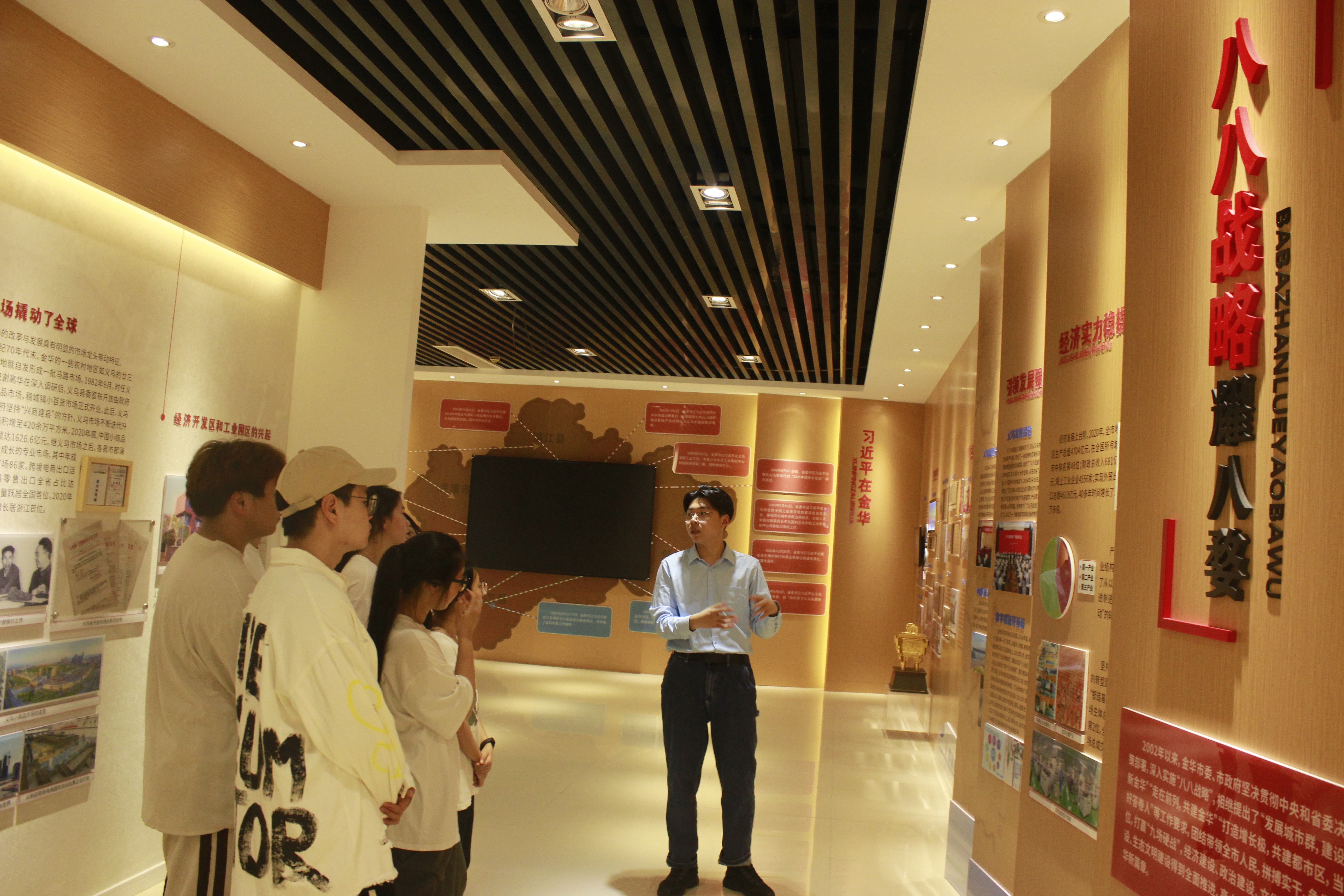 2003年,习近平总书记在浙江工作期间,作出“八八战略”决策部署,推动浙江在省域层面进行了中国特色社会主义的实践创新、理论创新,引领浙江开启了伟大变革之路。地处浙江之心,坐拥浙中城市群的金华,得到了习近平总书记的亲切关怀。实践团在社会实践前就计划通过前往金华市城市规划馆、金华市档案馆、义乌市城市规划馆等用“观展”方式看金华伟大发展成就,通过前往义乌市国际商贸城、金华市相关非公企业等用“访谈”方式问发展成就,通过“非公企业产业工人培训技能提升”以及“乡村振兴实践探索”等主题以“调查”方式看问题、想方法、找经验,步行八婺大地看发展,用心感悟“八八战略”真理伟力。