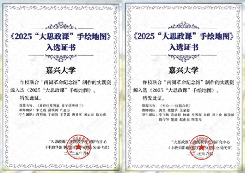 近日,嘉兴大学联合结对基地制作的《青春红船领航 青年挺膺担当》《初心——红船启航》2项教学资源成功入选教育部《2025“大思政课”手绘地图》,成为学校持续深化打造“真理的味道·红船旁的大思政课”品牌的又一重要成果。此次,浙江省仅有5所高校的教学资源入选。