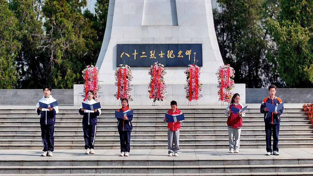 图为大中小学生共同演绎红色诗朗诵《精神永续照山河——刘老庄的青春接力》。记者 刘冬 摄