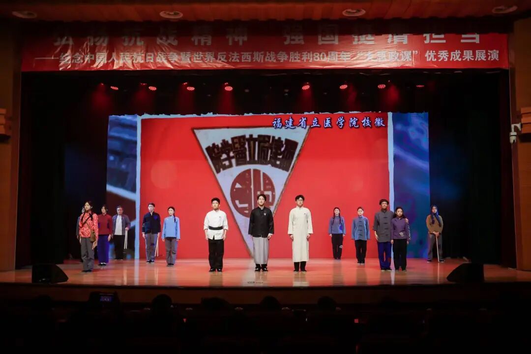 此次展演结合医学院校特色,展示了大学生讲思政课《烽火八秩 砥砺仁心》、主题情景剧《沙县1939》《杏林春暖》、主题演讲《救亡之志 仁心柱石》、微电影《茵茵的笛声》《选择》、歌曲联唱《如愿》、情境舞蹈《纸鸢乘风》等作品节目,通过艺术化呈现、具象化演绎,帮助学生深刻领悟伟大抗战精神的丰富内涵和时代价值,传承弘扬红色文化。此次展演对获得“弘扬抗战精神 强国挺膺担当”——纪念中国人民抗日战争胜利暨世界反法西斯战争胜利80周年“大思政课”优秀作品的学生进行了表彰。校领导、老师们为获奖者颁奖。此次展演还通过现场抗战知识抢答竞赛、校史知识网络直播答题,进一步提升展演的参与度和趣味性,获得师生好评。