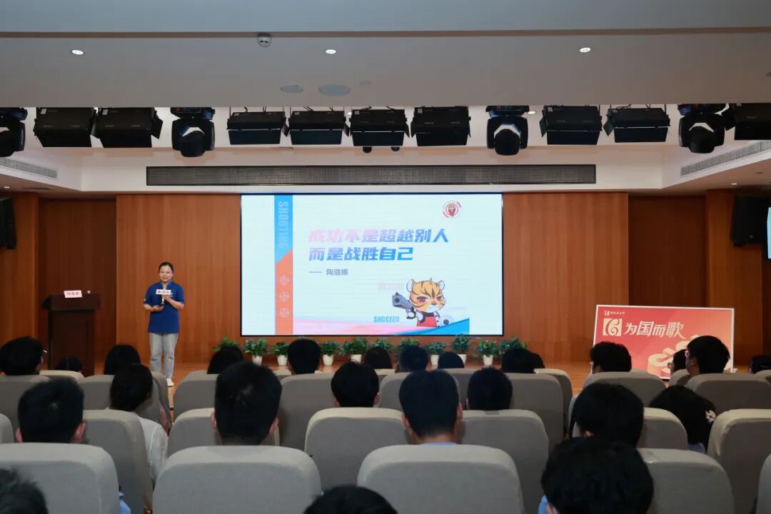 在中国共产党成立104周年之际,为贯彻落实习近平总书记“‘大思政课’要善用之”的重要理念,深入推进大中小思政教育一体化建设,6月28日下午,由上海体育大学马克思主义学院联合杨浦区文化和旅游局、国歌展示馆共同举办“七一”主题活动——“为国而歌”冠军思政课第三讲在国歌展示馆开讲。2000年悉尼奥运会女子10米气手枪冠军、国际运动健将、全国政协委员、上海市竞技体育训练管理中心射击射箭运动中心主任陶璐娜以“成功不是超越别人,而是战胜自己”为主题分享了自己的运动生涯和心路历程。